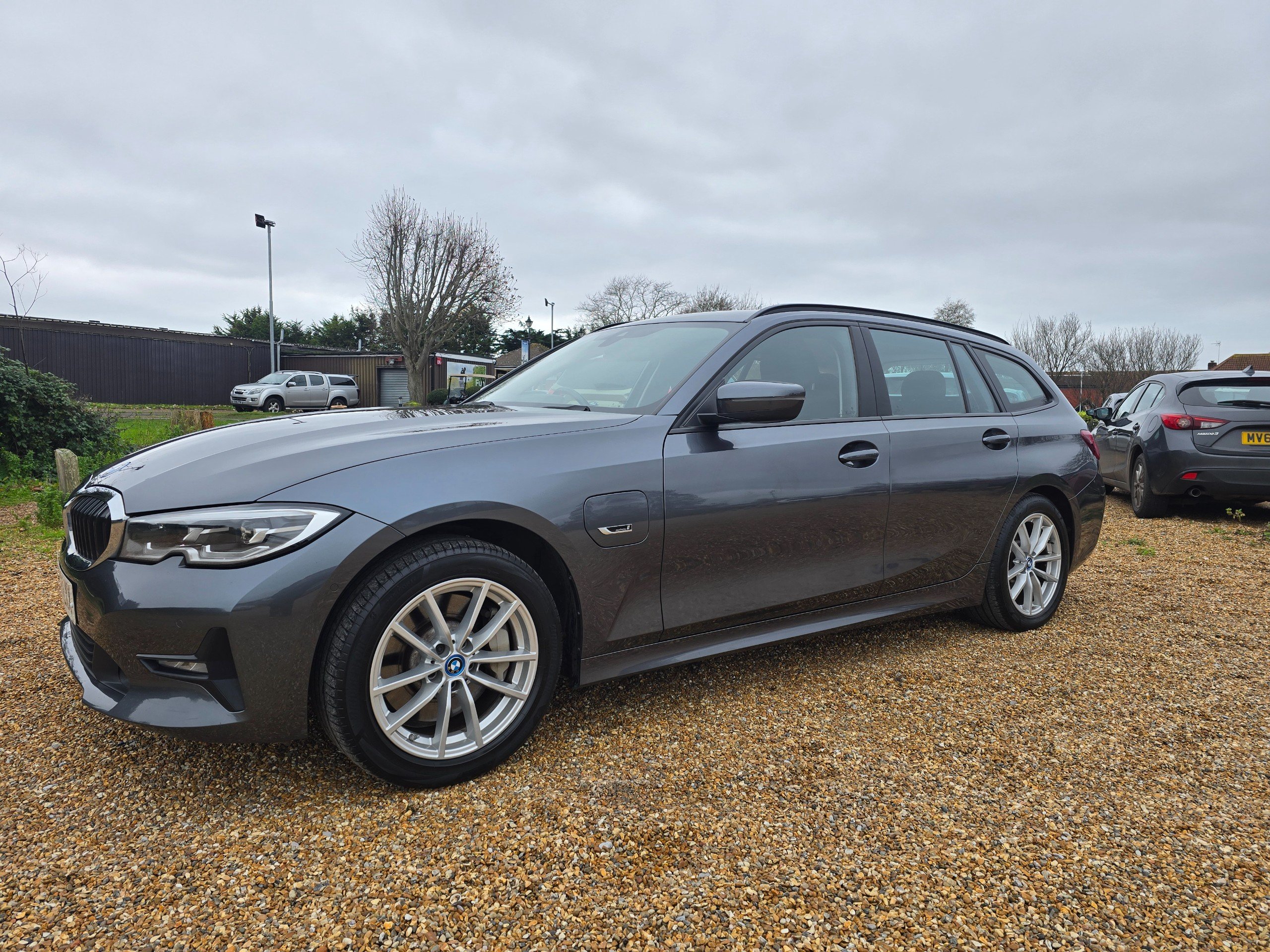 This 2022 BMW 3 Series 2.0 330e 12kWh SE Pro Touring 5dr Petrol Plug-in Hybrid Auto Euro 6 (s/s) (292 ps) estate car with 79165 miles on the clock is a great option for those looking for a spacious and efficient vehicle. With MOT valid until 26/06/2026, 5 seats, and 5 doors, it's perfect for families or those who need extra cargo space. Not only is this car ULEZ compliant, but it also comes with features such as Mineral Grey exterior and Hevelius Cloth Anthracite with Black interior, 12V Power Sockets, BMW ConnectedDrive Online Services, and BMW Emergency Call. Plus, being a petrol plug-in hybrid, it's an environmentally friendly choice. This car comes with full service History 4 Services 3 Main Dealer last Service done @79k .. BMW Pro Navigation. Digital instrument cluster. Ambient interior lights. Rear parking Sensors with Camera. Charging Cables .Rear seats climate control. Auto Tailgate.